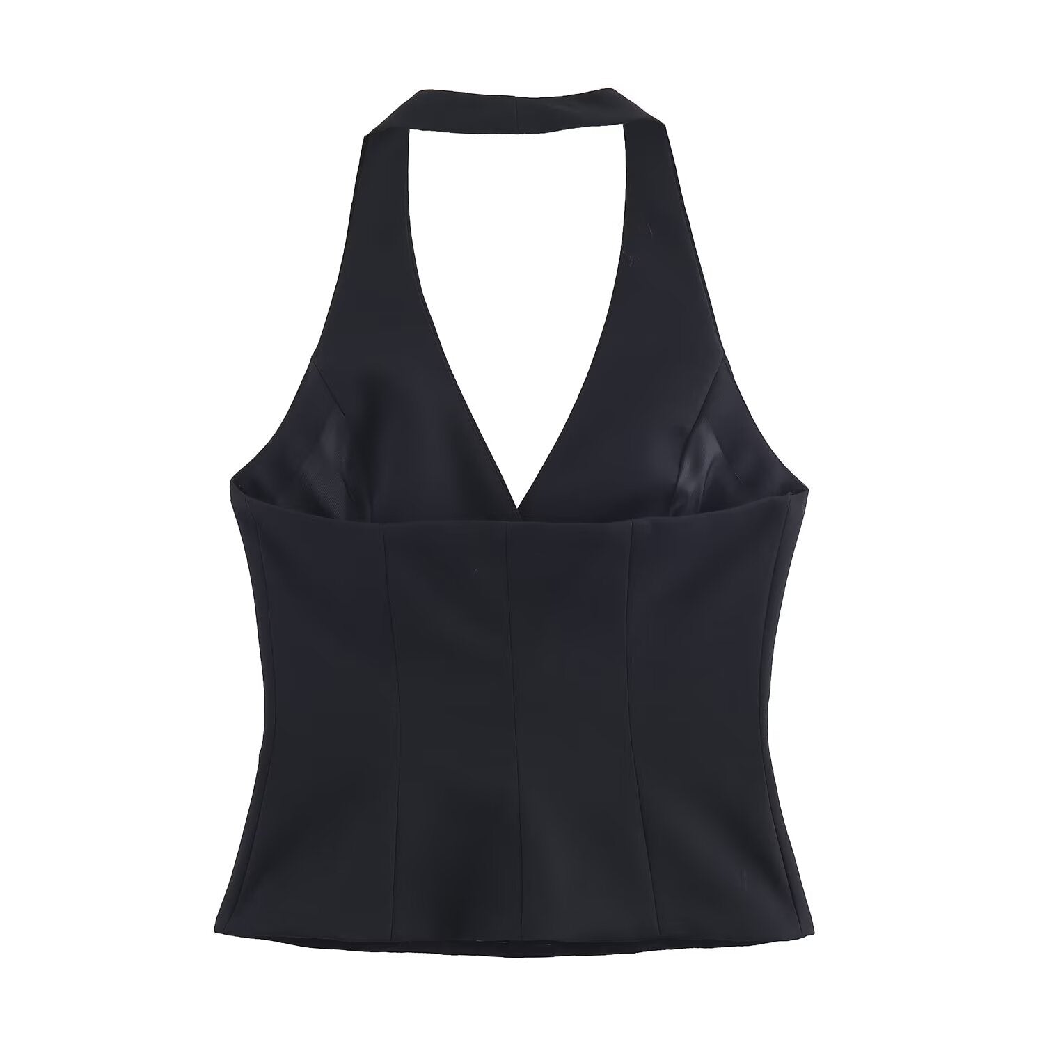 Viola | Elegant Halter Neck Top Black Double Breasted Sleeveless