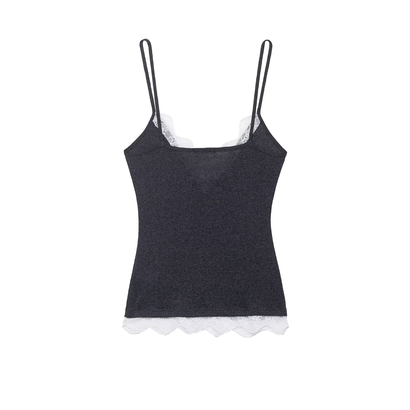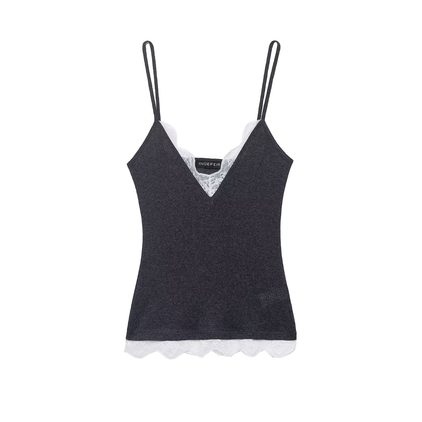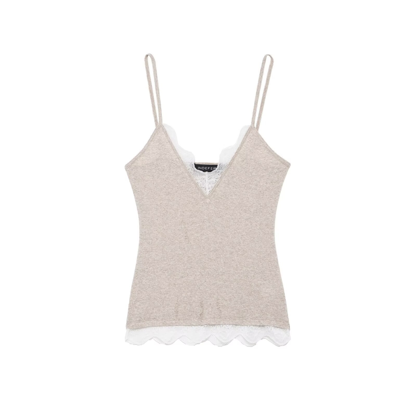 Viola | Everyday Lace Trim Cami Top Grey V Neck Fitted Sleeveless