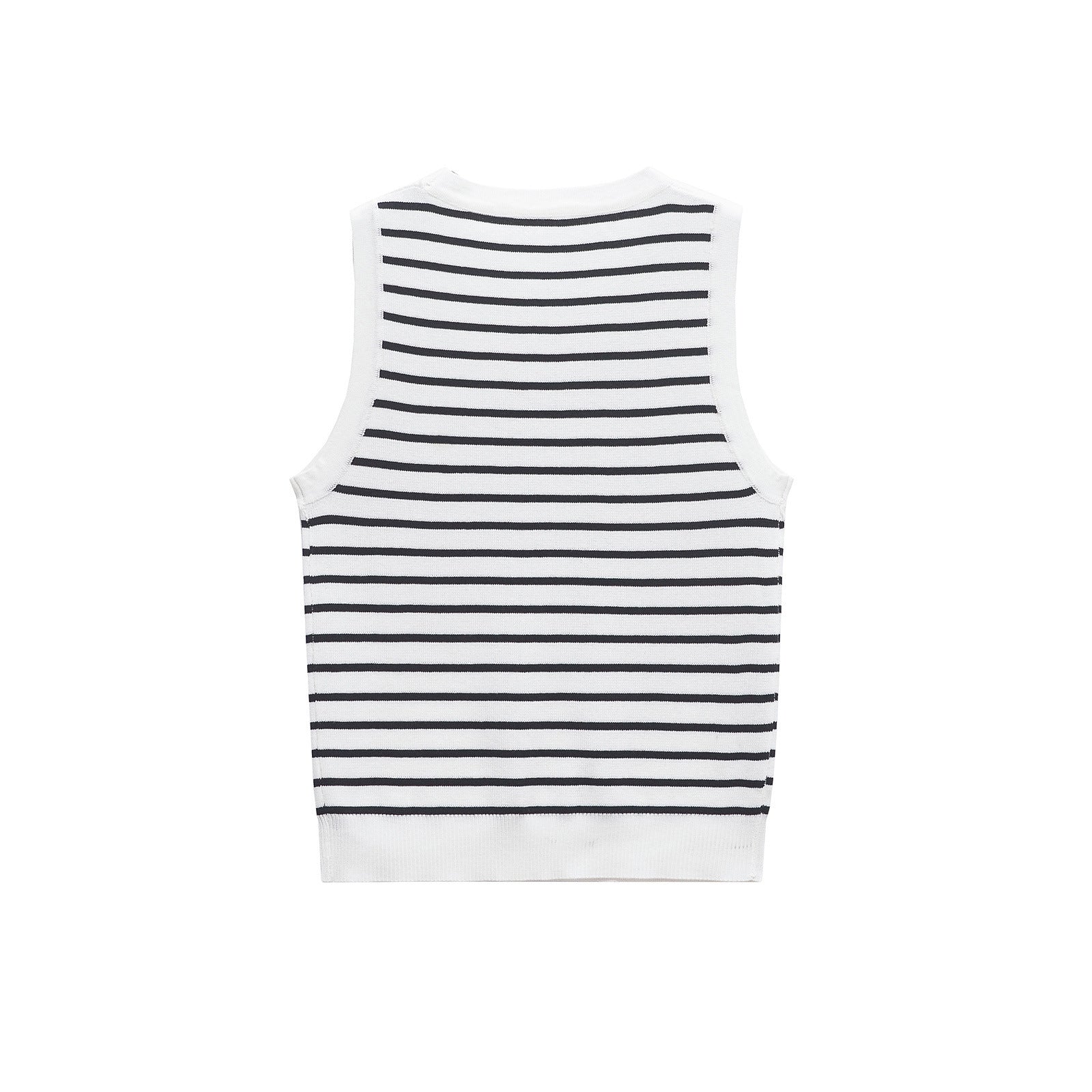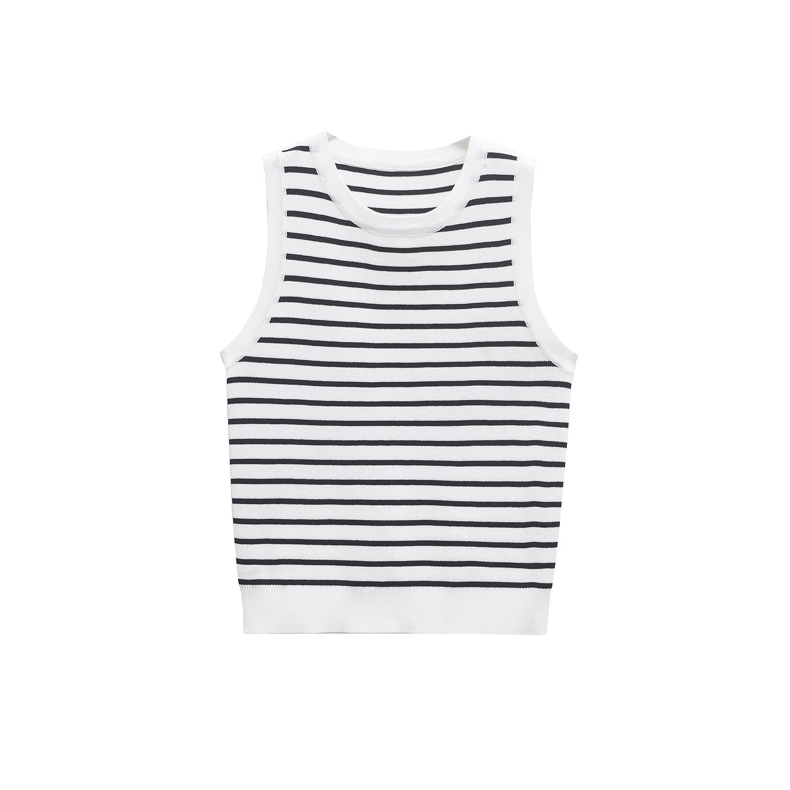 Meet the MeandMio Essential Striped Ribbed Tank Top - White.